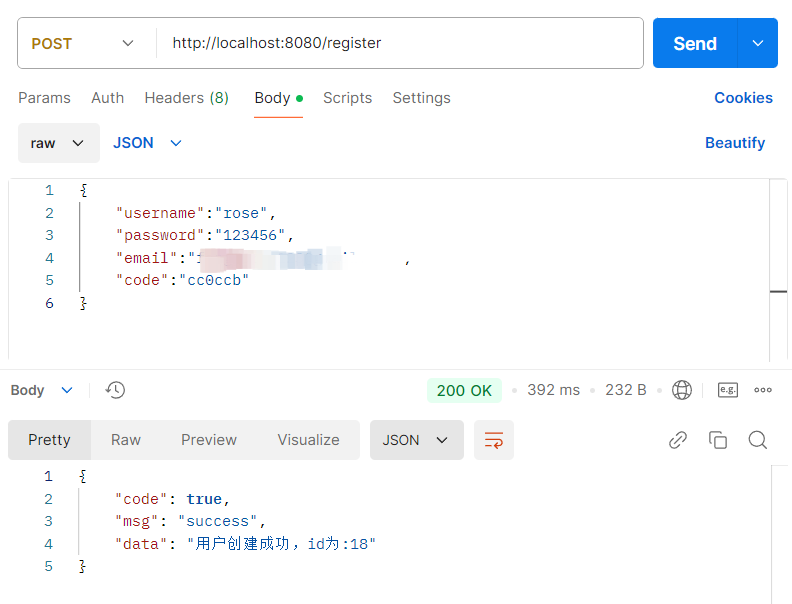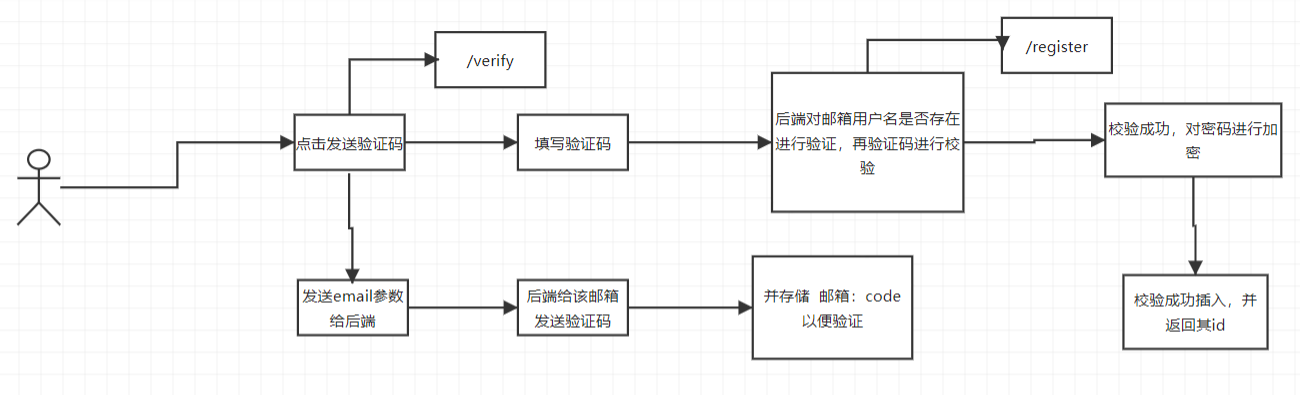 用户输入用户、密码、邮件进行注册,会发送验证码进行注册,验证码验证成功后将数据存储到数据库中。